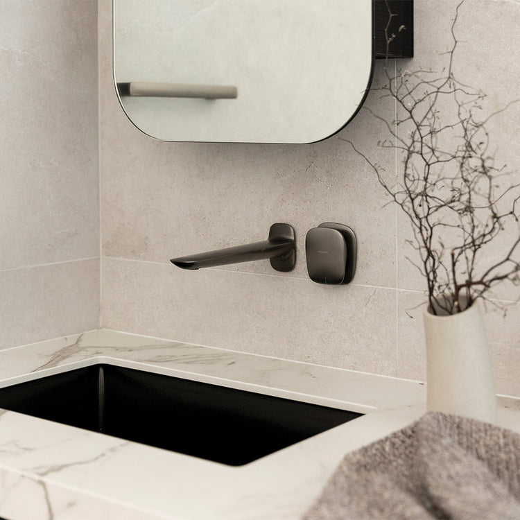 Phoenix Nuage Wall Basin / Bath Mixer Set 200mm Brushed Carbon Lead Free
