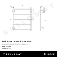 Phoenix Radii Towel Ladder 550 x 740mm Square Plate Matte Black