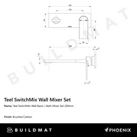 Phoenix Teel SwitchMix Wall Basin/Bath Mixer Set 200mm (Fit-Off Kit) Brushed Carbon