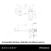 Phoenix Teel SwitchMix Wall Basin/Bath Mixer Set 200mm (Fit-Off Kit) Lead Free Chrome
