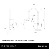 Phoenix Vask Flexible Hose Sink Mixer 200mm Brushed Carbon Lead Free