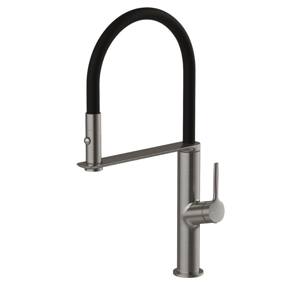 Product Features Dual function handpiece detaches from cradle for extended reach Velvet touch, matte black silicone hose for style and flexibility 360° swivel spout for enhanced functionality 25mm ceramic cartridge... Read more