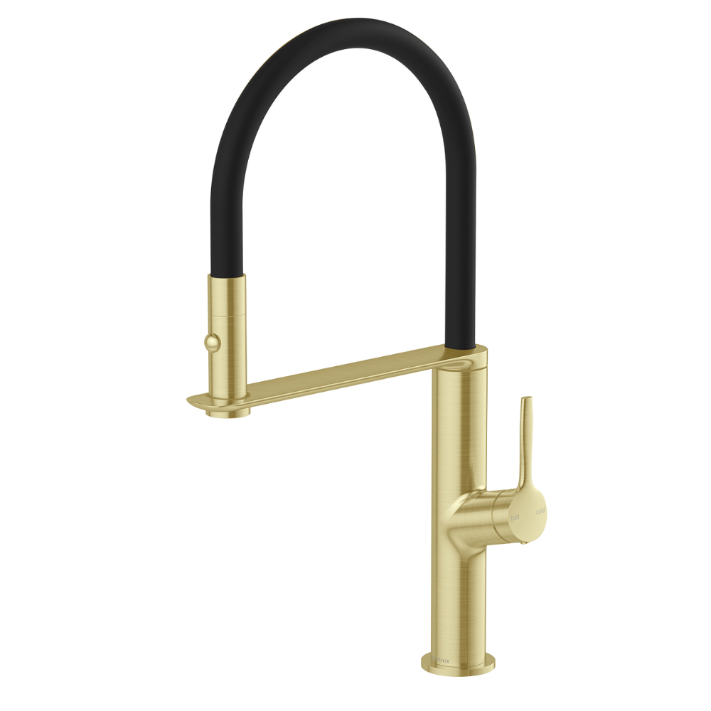 Phoenix Vask Flexible Hose Sink Mixer 200mm Brushed Gold Lead Free