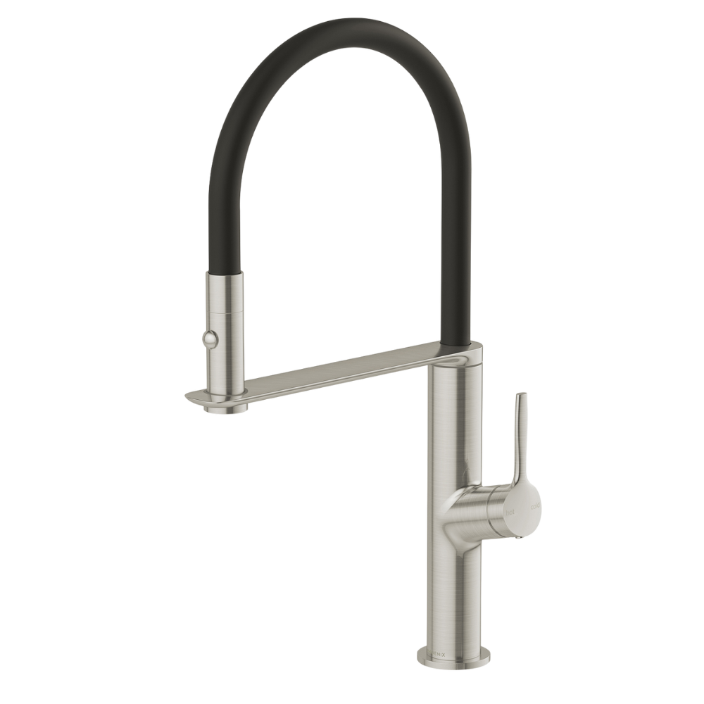 Phoenix Vask Flexible Hose Sink Mixer 200mm Brushed Nickel Lead Free