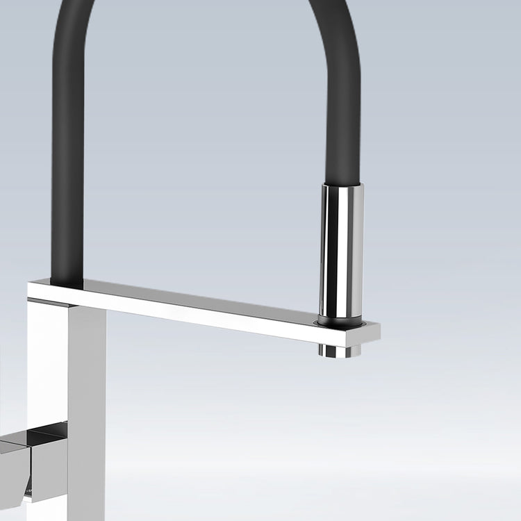 Product Features 360° swivel spout for enhanced functionality Velvet touch, matte black, silicone hose for style and flexibility Single function handpiece detaches from cradle for extended reach Brass construction Lead... Read more