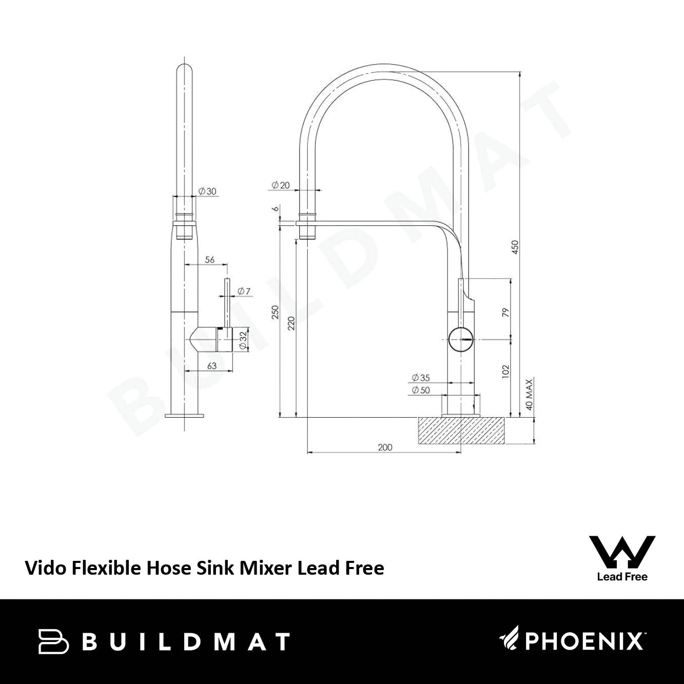 Phoenix Vido Flexible Hose Sink Mixer Brushed Nickel Lead Free