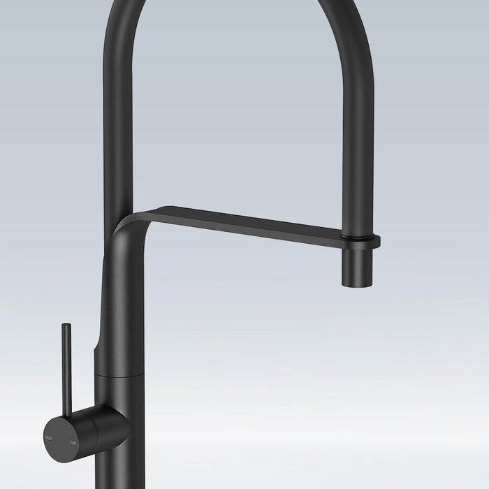 Product Features 360° swivel spout for enhanced functionality Velvet touch, matte black, silicone hose for style and flexibility Single function handpiece detaches from cradle for extended reach Brass construction 25mm... Read more