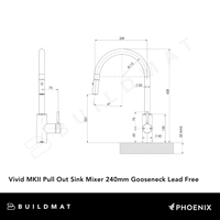 Phoenix Vivid MKII Pull Out Sink Mixer 240mm Gooseneck Brushed Gold Lead Free