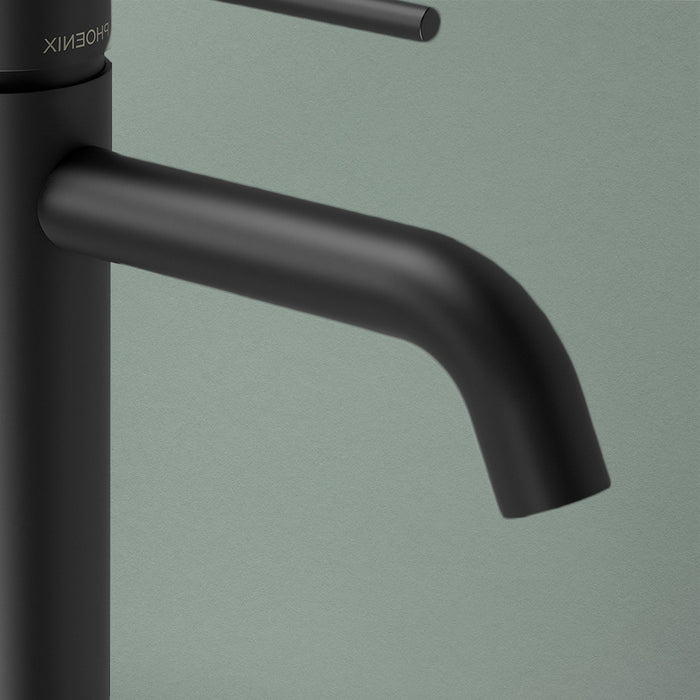 Phoenix Vivid Slimline Basin Mixer Curved Outlet Matte Black