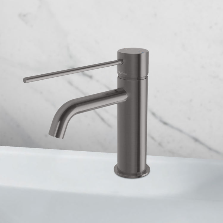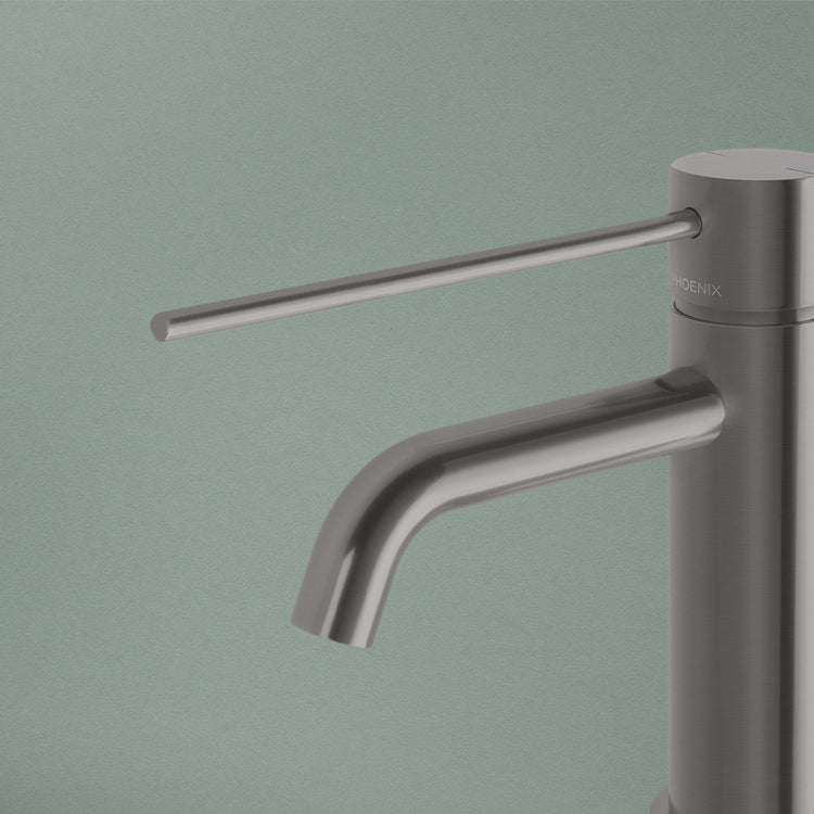 Phoenix Vivid Slimline Basin Mixer Curved Outlet with Extended Lever Brushed Carbon Lead Free