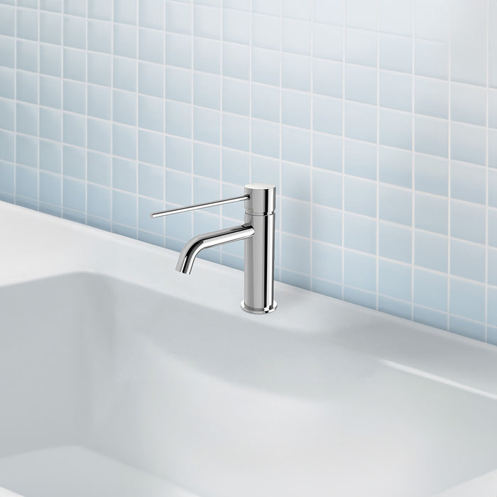 Phoenix Vivid Slimline Basin Mixer Curved Outlet with Extended Lever Lead Free Chrome