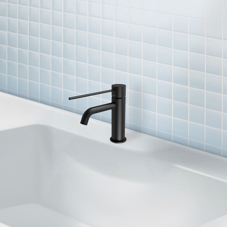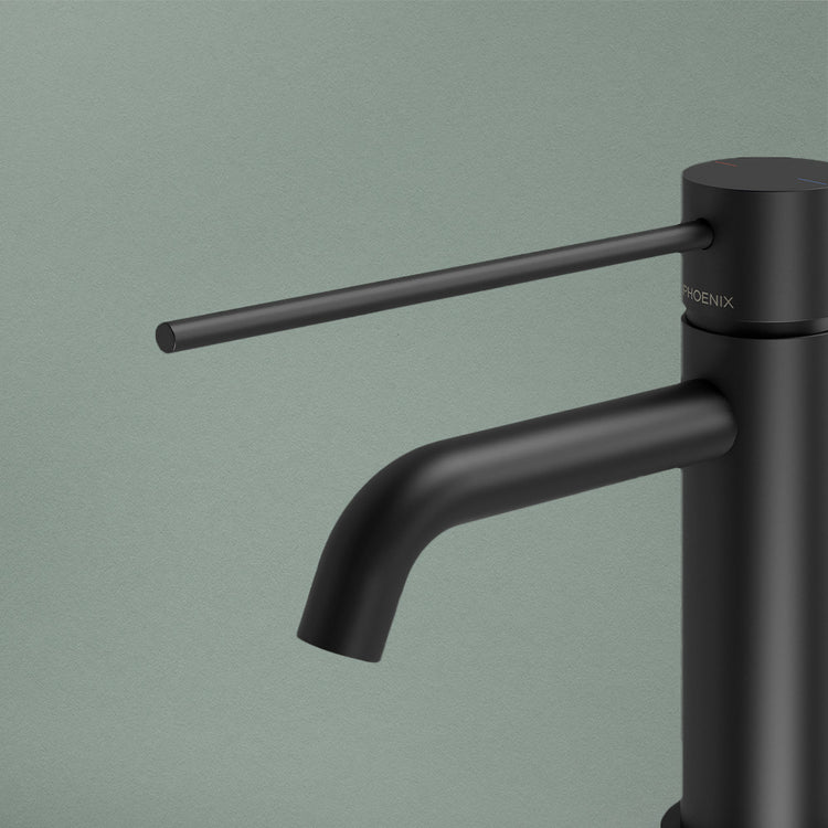 Phoenix Vivid Slimline Basin Mixer Curved Outlet with Extended Lever Matte Black