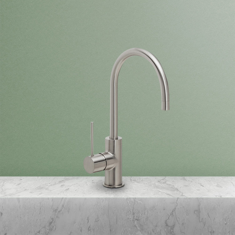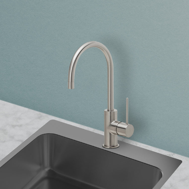 Phoenix Vivid Slimline Brushed Nickel Sink Mixer 160mm Gooseneck Lead Free