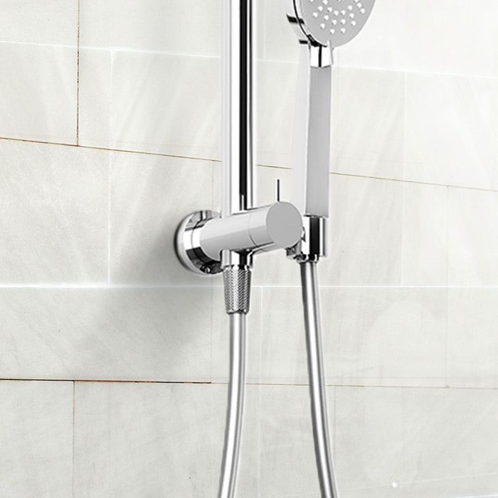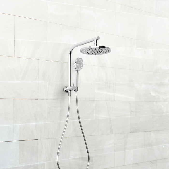 Product Features Fits onto existing 1/2 plumbing with drill-free installation Built-in diverter to switch from overhead shower to handpiece Supported by a 15 year warranty 3 function handpiece with angle... Read more