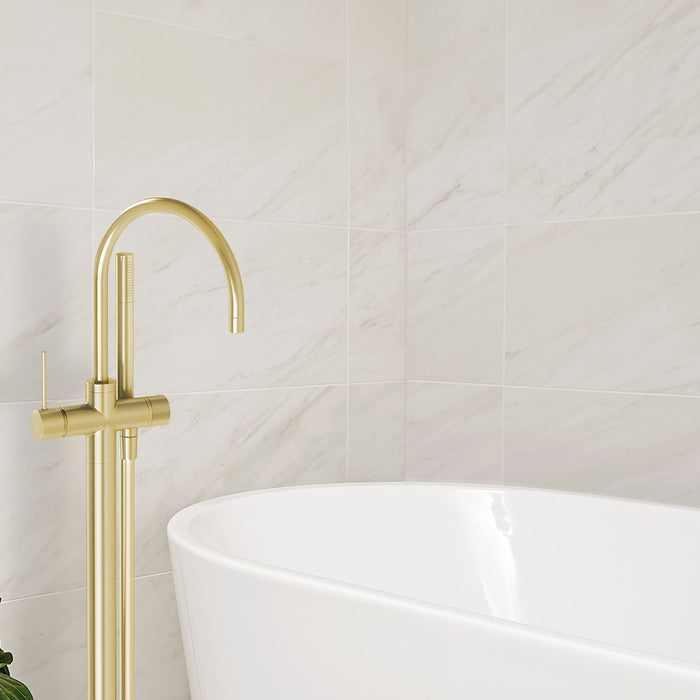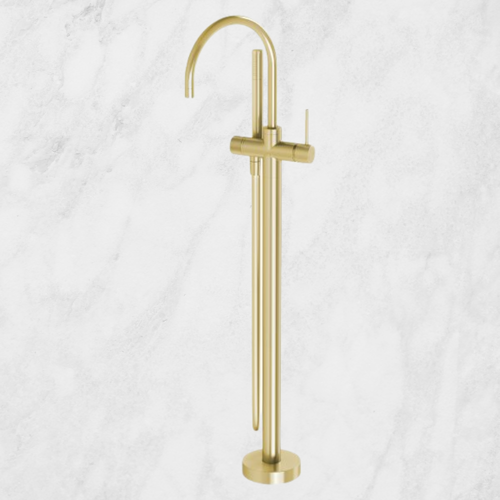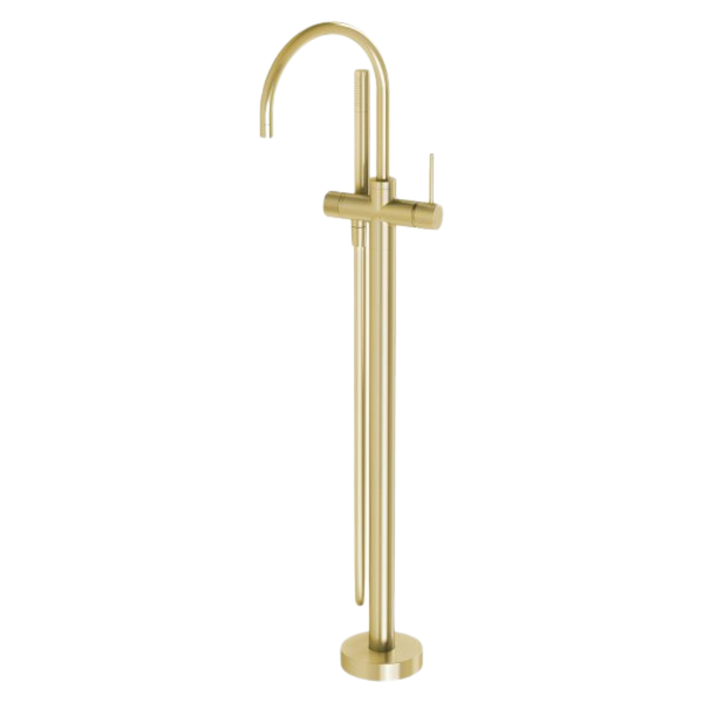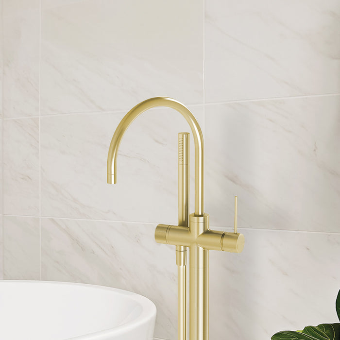 Phoenix Vivid Slimline Floor Mounted Bath Mixer with Hand Shower Brushed Gold
