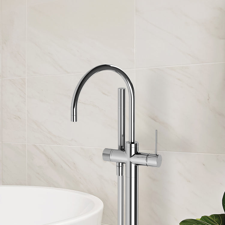 Phoenix Vivid Slimline Floor Mounted Bath Mixer with Hand Shower Chrome