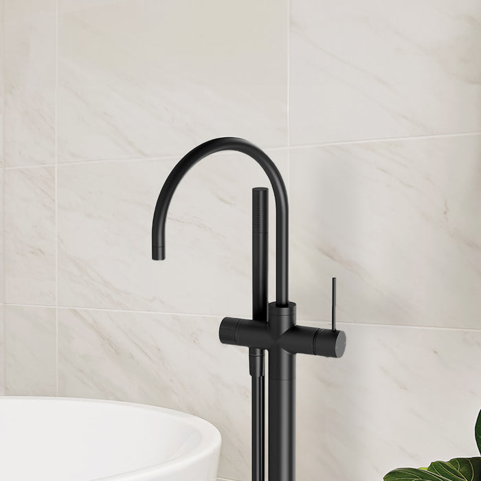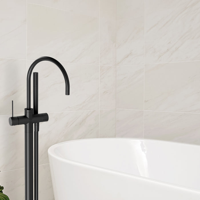 Phoenix Vivid Slimline Floor Mounted Bath Mixer with Hand Shower Matte Black