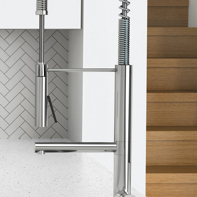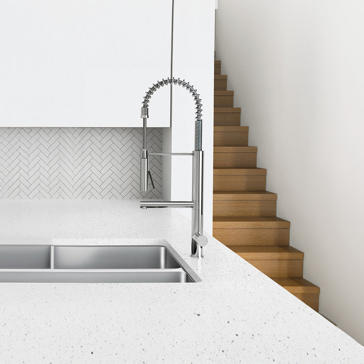 Product Features 360° swivel spout for enhanced functionality Trigger handpiece with internal diverter for seamless water transition from spout to veggie spray Flexible stainless steel braided hose and brass construction... Read more