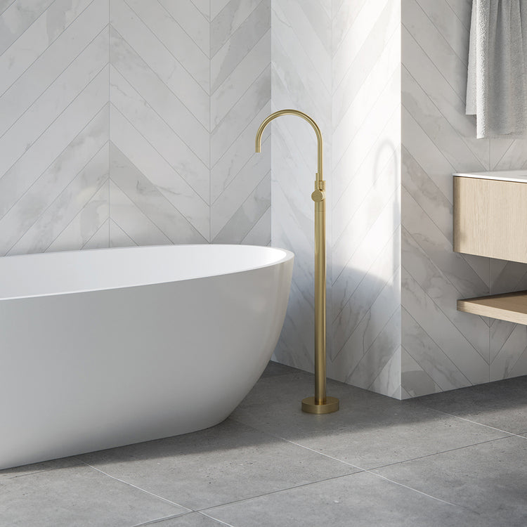 Phoenix Vivid Slimline Oval Floor Mounted Bath Mixer Brushed Gold