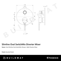 Phoenix Vivid Slimline Oval SwitchMix Shower/Bath Diverter Mixer (Fit-Off Kit) Brushed Nickel