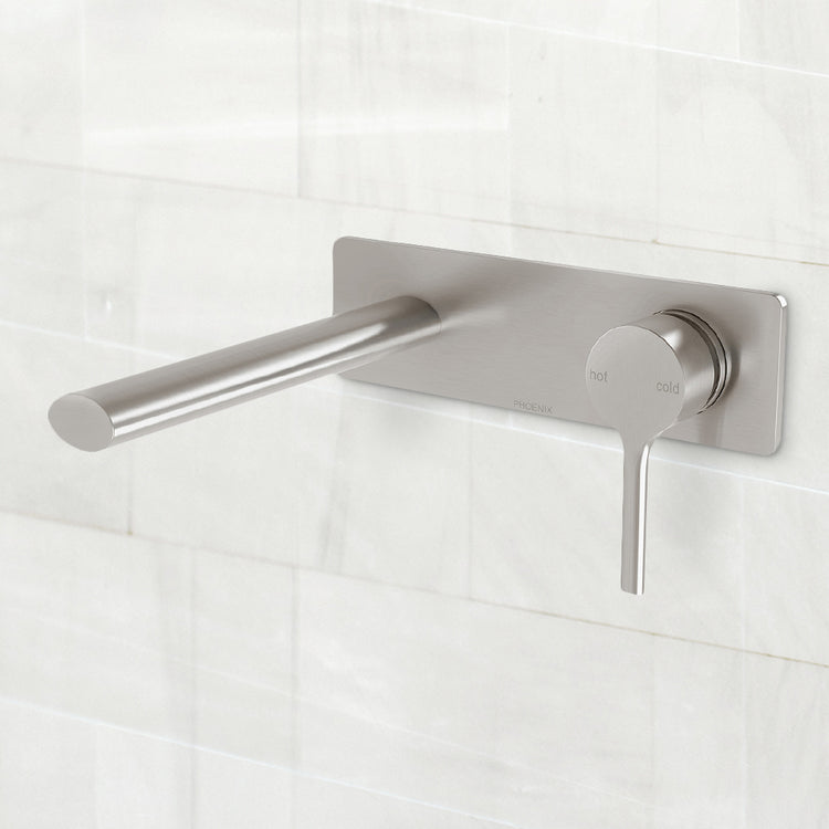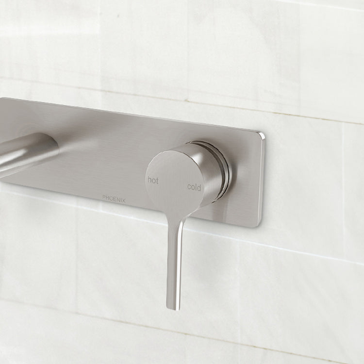 Phoenix Vivid Slimline Oval SwitchMix Wall Basin/Bath Mixer Set 175mm (Fit-Off Kit) Lead Free Brushed Nickel