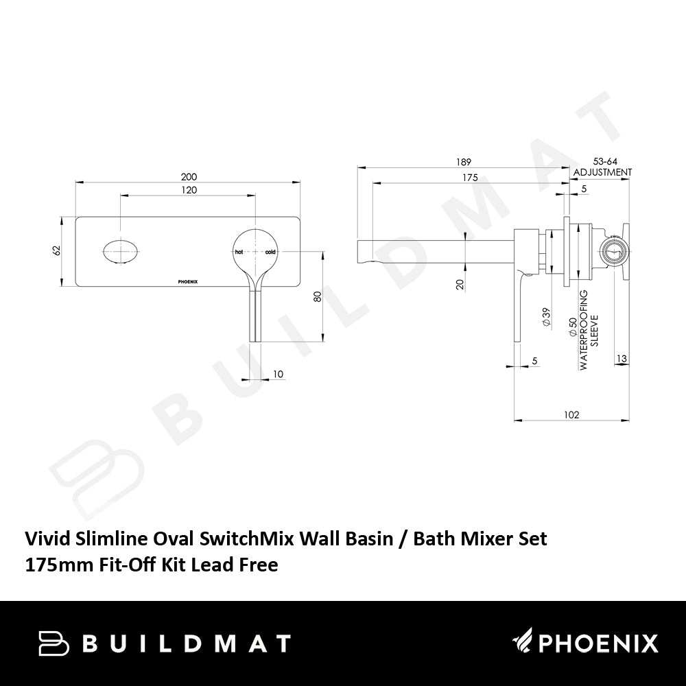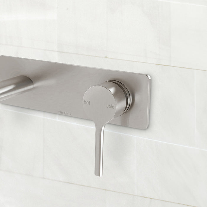 Phoenix Vivid Slimline Oval SwitchMix Wall Basin / Bath Mixer Set 175mm Fit-Off Kit Brushed Nickel Lead Free