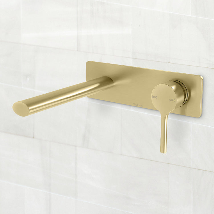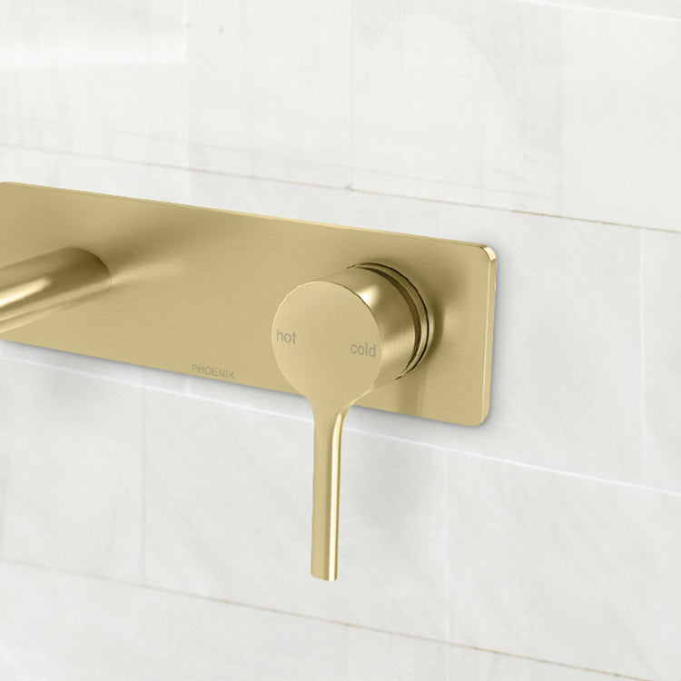 Phoenix Vivid Slimline Oval Wall Basin Mixer Set 175mm Brushed Gold