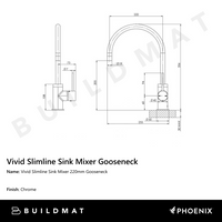 Phoenix Vivid Slimline Sink Mixer 220mm Gooseneck Chrome