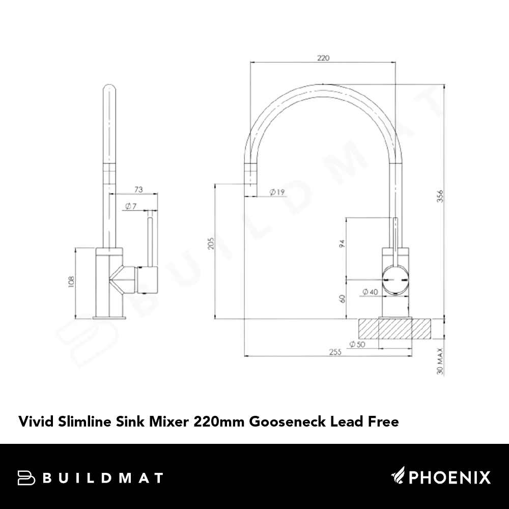 Phoenix Vivid Slimline Sink Mixer 220mm Gooseneck Lead Free Brushed Carbon