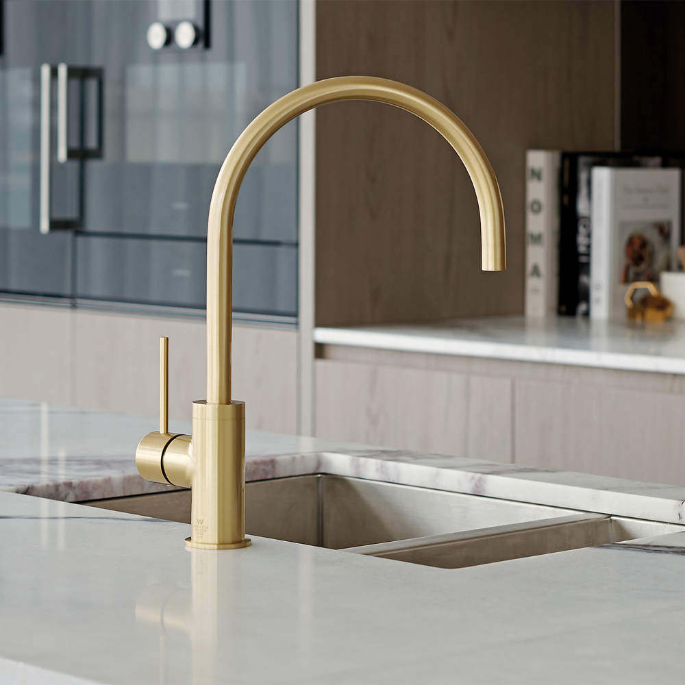 Phoenix Vivid Slimline Sink Mixer 220mm Gooseneck Lead Free Brushed Gold