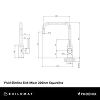 Phoenix Vivid Slimline Sink Mixer 220mm Squareline Lead Free Chrome