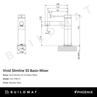 Phoenix Vivid Slimline SS 316 Basin Mixer Stainless Steel