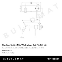 Phoenix Vivid Slimline SwitchMix Wall Basin / Bath Mixer Set 180mm Fit-Off Kit Brushed Carbon