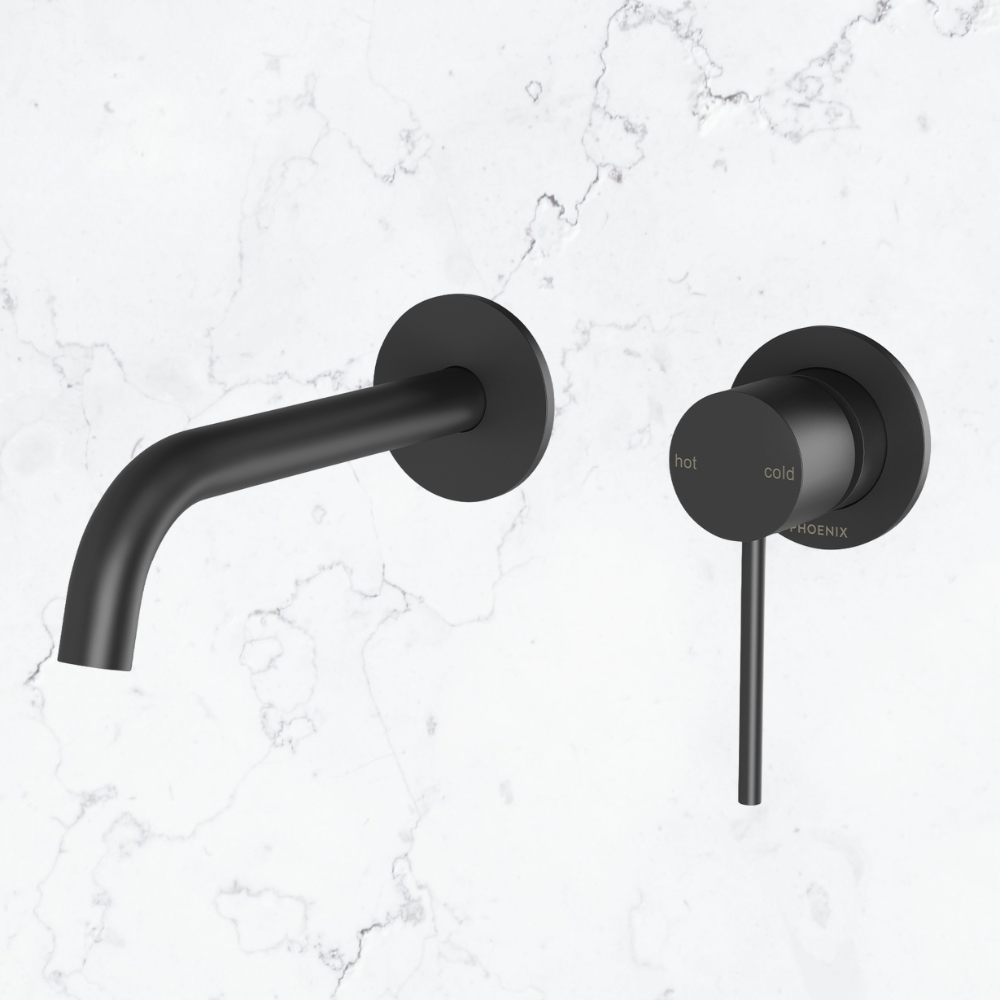 Phoenix Vivid Slimline SwitchMix Wall Basin / Bath Mixer Set 60mm Backplates (Complete Kit) Lead Free Matte Black
