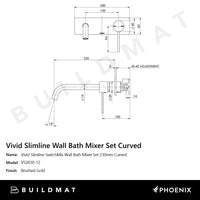 Phoenix Vivid Slimline SwitchMix Wall Bath Mixer Set 230mm Curved Brushed Gold