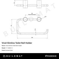Vivid Slimline Toilet Roll Holder Brushed Gold Unique, easy fix design with level adjustment mechanism and concealed fixing Dual fixing for a secure mount Supported by a 7 year warranty... Read more