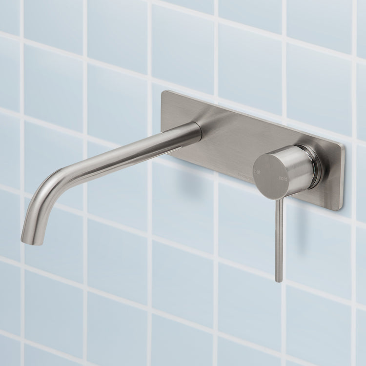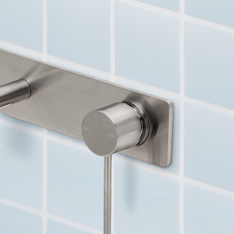 Phoenix Vivid Slimline Wall Basin/Bath Mixer Set 230mm (Complete Kit) Brushed Nickel