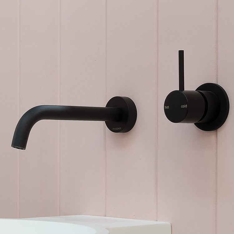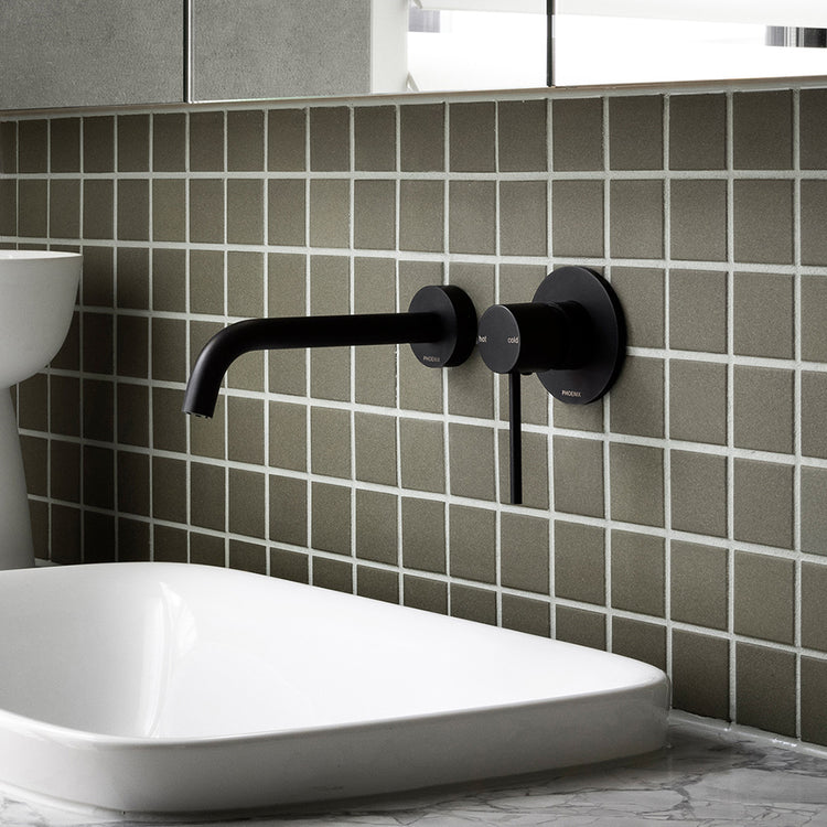 Phoenix Vivid Slimline Wall Basin Outlet 180mm Curved Lead Free Matte Black