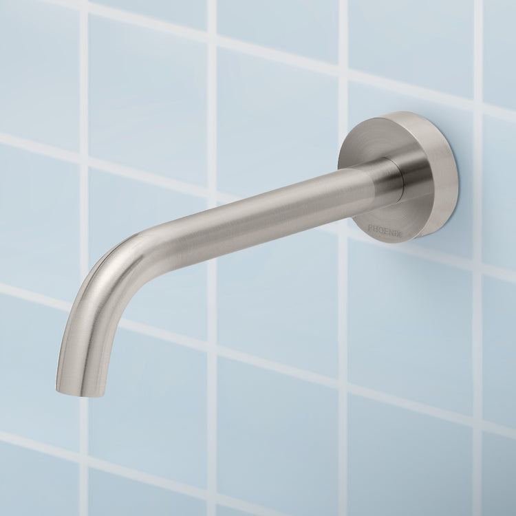 Phoenix Vivid Slimline Wall Bath Outlet 180mm Curved Brushed Nickel Lead Free