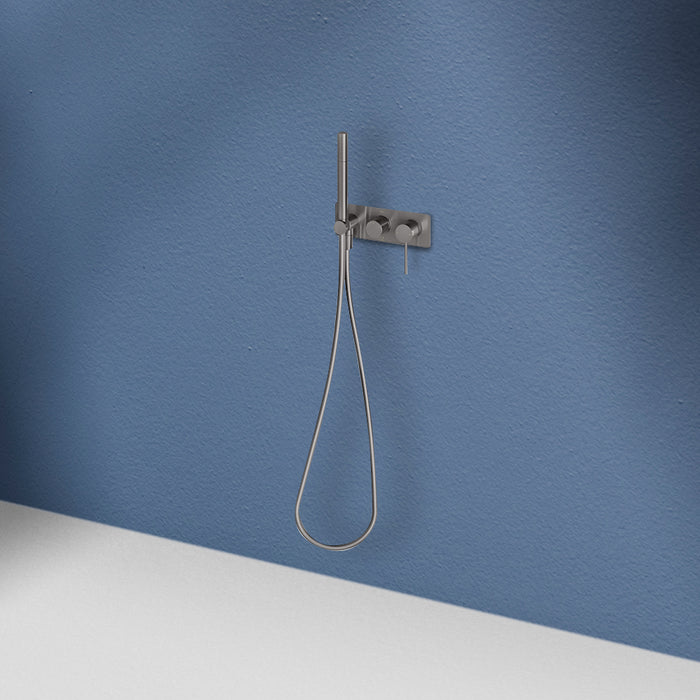 Vivid Slimline Wall Shower System Brushed Carbon Ceramic 180° rotary diverter to switch between handpiece and a second connected outlet Single function handpiece with easy-clean hose AS2845.1 Compliant Dual Check... Read more