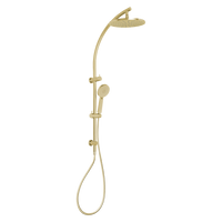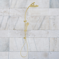 Vivid Twin Shower Brushed Gold Top water inlet fits onto existing 1/2 plumbing Built-in, rotary diverter to switch from overhead shower to handpiece Dual check valve certification Brass rail, brackets... Read more