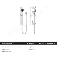 Product Type: Rail ShowerProduct SKU: NR318CHColour: ChromeMaterial: 304 Stainless SteelWELS Rating: 3Star 9.0L/Min Features: High quality solid metal rail 3 function handset Strong and durable, satin-smooth hose Adjustable bottom pillar... Read more