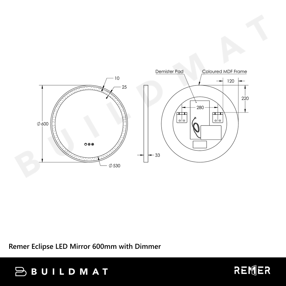 Remer Eclipse LED Mirror 600mm Milano White