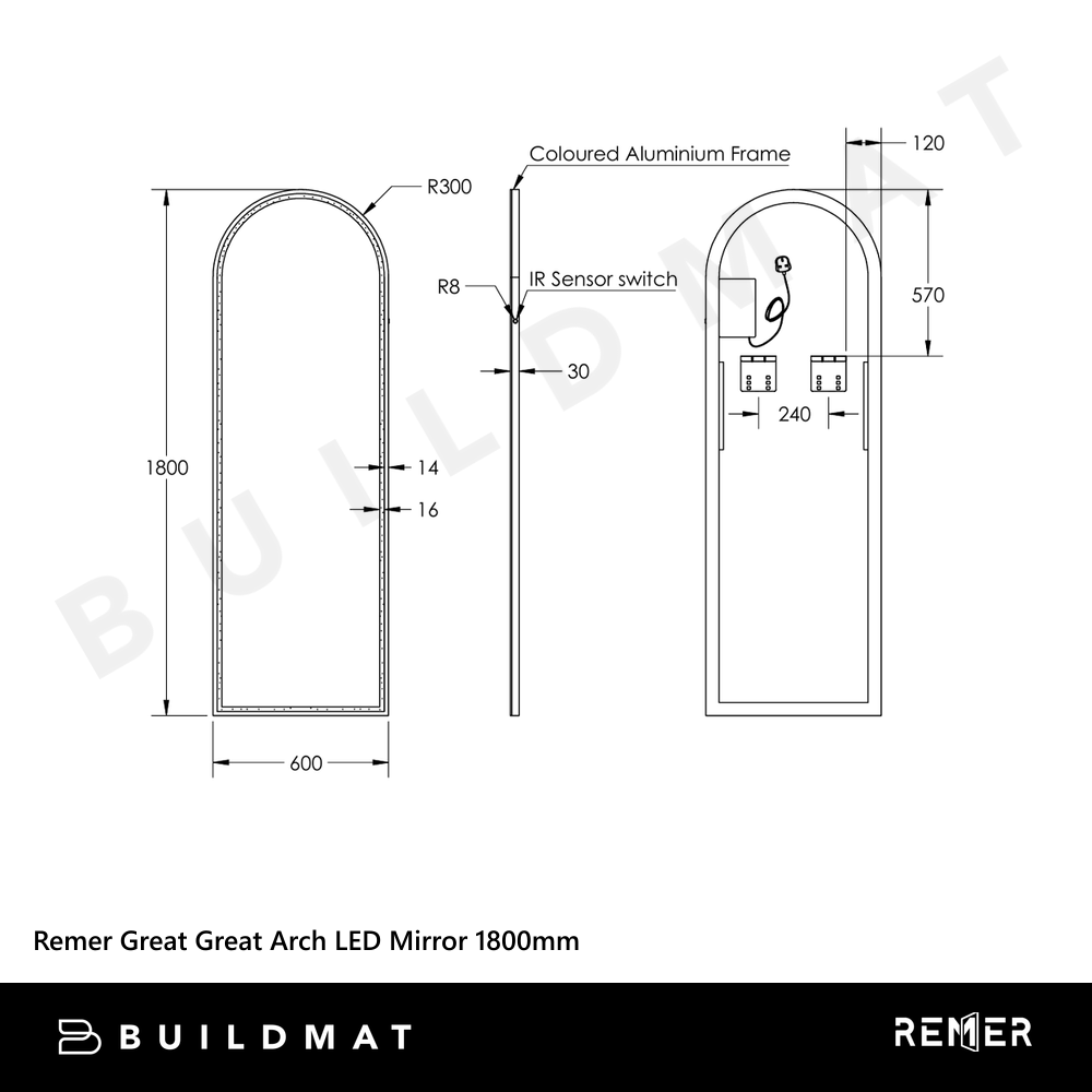Remer Great Great Arch LED Mirror 1800mm Milano White