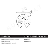 Nero Round Shower Head 250mm Matte Black