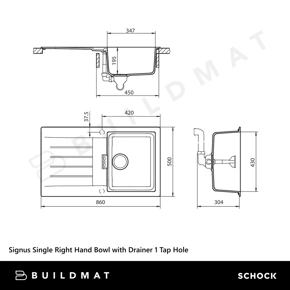 Schock Signus Single Right Hand Bowl with Drainer 1 Tap Hole Magma