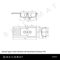 Schock Typos 1 And 3/4 Bowl Nero Right Hand Bowl And Drainer 1 Tap Hole Black