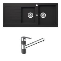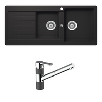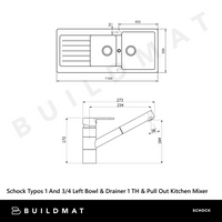 Schock Typos 1 And 3/4 Bowl With Right Hand Drainer 1 Tap Hole and Pull Out Kitchen Mixer Onyx Black