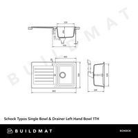 Schock Typos Single Bowl With Drainer Croma Right Hand Bowl 1 Tap Hole Grey