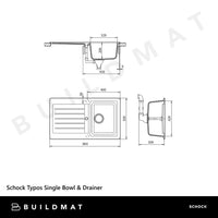 Schock Typos Single Bowl With Drainer Onyx Right Hand Bowl 1 Tap Hole Black